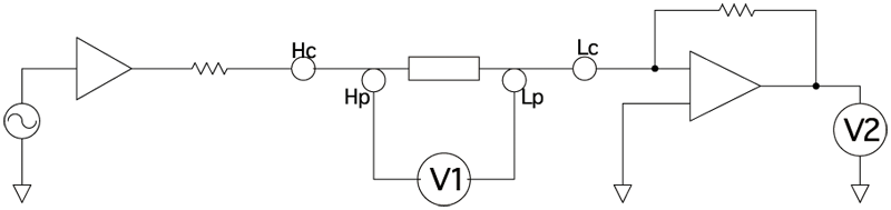 通過檢測電阻將流過被測物的電流進行電壓轉(zhuǎn)換并檢測。讓Lc端子的電位保持為OV。
