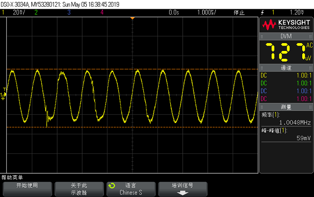 使用簡(jiǎn)易運(yùn)放阻抗測(cè)量電路1MHz測(cè)量6.8nF Lcur(虛地點(diǎn))實(shí)測(cè)波形如下: