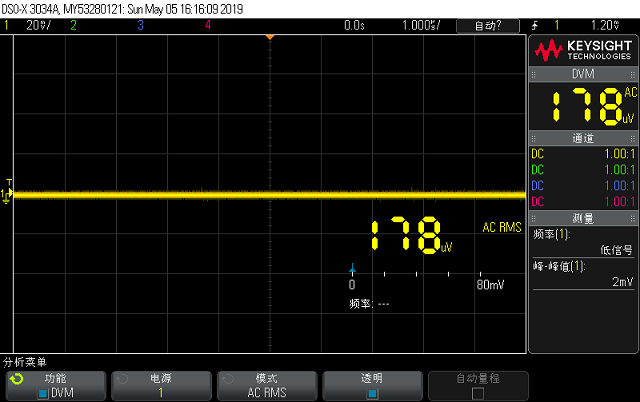 以上可見(jiàn),使用簡(jiǎn)易運(yùn)放阻抗測(cè)量電路虛地端電壓峰峰值高達(dá)59mV,而使用自動(dòng)平衡電橋原理的虛地端電壓峰峰值僅為2mV,所以:使用自動(dòng)平衡電橋的虛地性能遠(yuǎn)遠(yuǎn)好于使用一個(gè)簡(jiǎn)易運(yùn)放做測(cè)量的電路。
